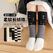 韩版破洞儿童袜子2023秋冬新款条纹拼色男女童中筒袜双针堆堆袜批