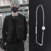 项链男潮嘻哈锁骨链男士轻奢小众设计高级感钛钢毛衣链子男生颈链