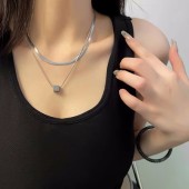 方糖叠戴钛钢蛇骨链项链女春季新款ins小众设计感嘻哈锁骨链配饰