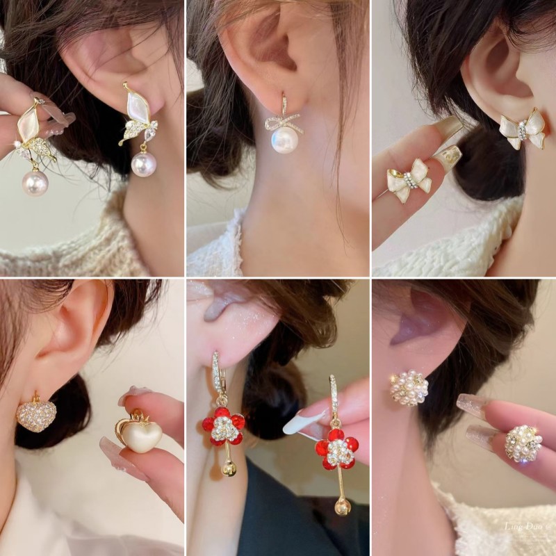 S925银针韩版潮流新款锆石耳钉女超仙水晶蝴蝶耳环小香风甜美耳饰