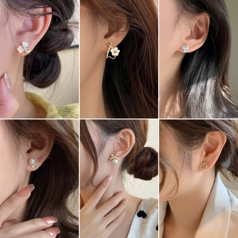 925银针气质小香风耳钉女简约小众ins珍珠耳环高级感锆石耳饰批发