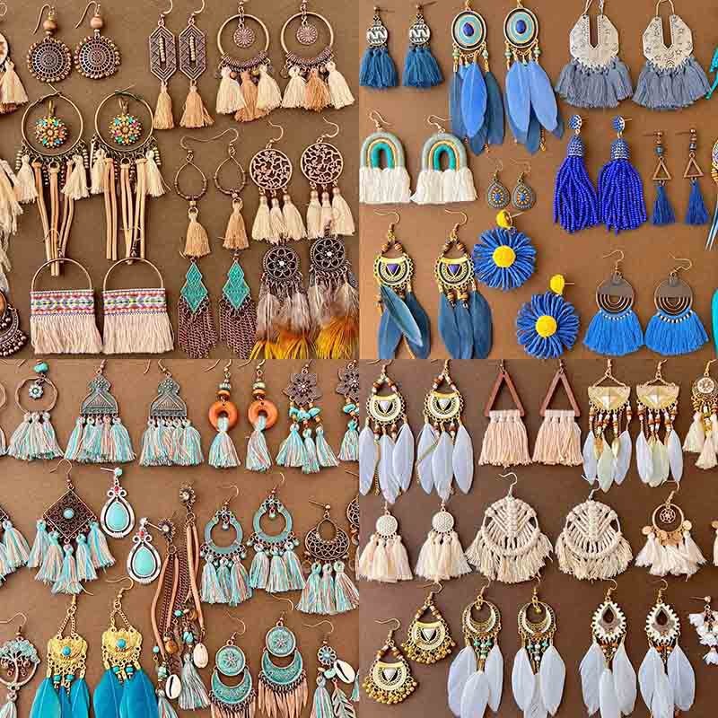 手作复古波西米亚民族风耳环女气质度假流苏耳钉泰国长款个性耳饰