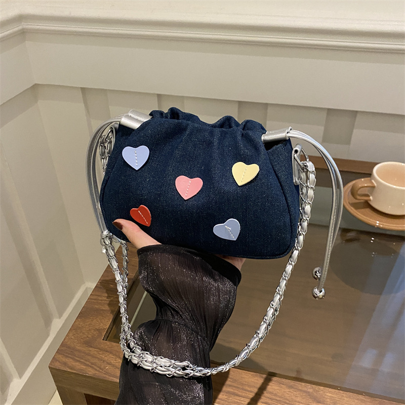 今年流行桃心抽绳链条小包包斜挎包2024新款潮时尚百搭休闲水桶包