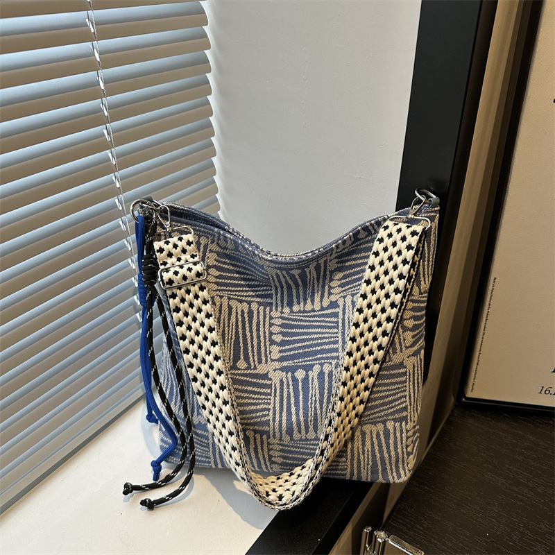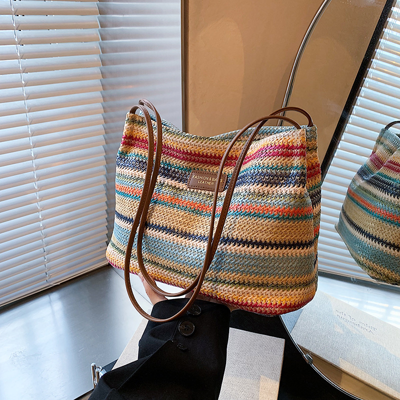 韩版时尚条纹针织布包包慵懒风斜挎包ins通勤托特包大容量单肩包