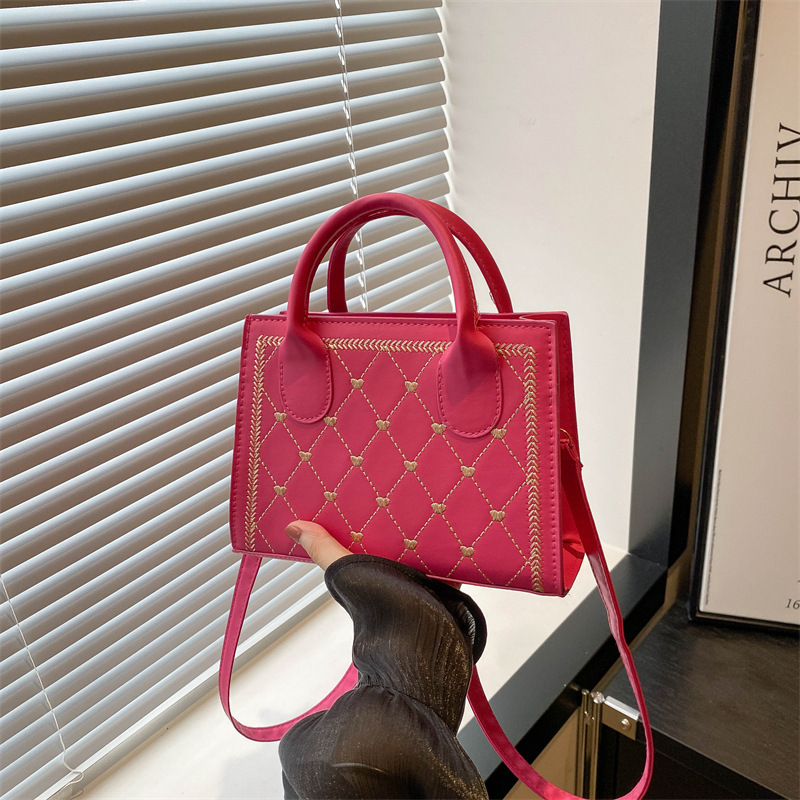 2024新款手提包百搭绣线菱格洋气小方包简约质感通勤手提斜挎包