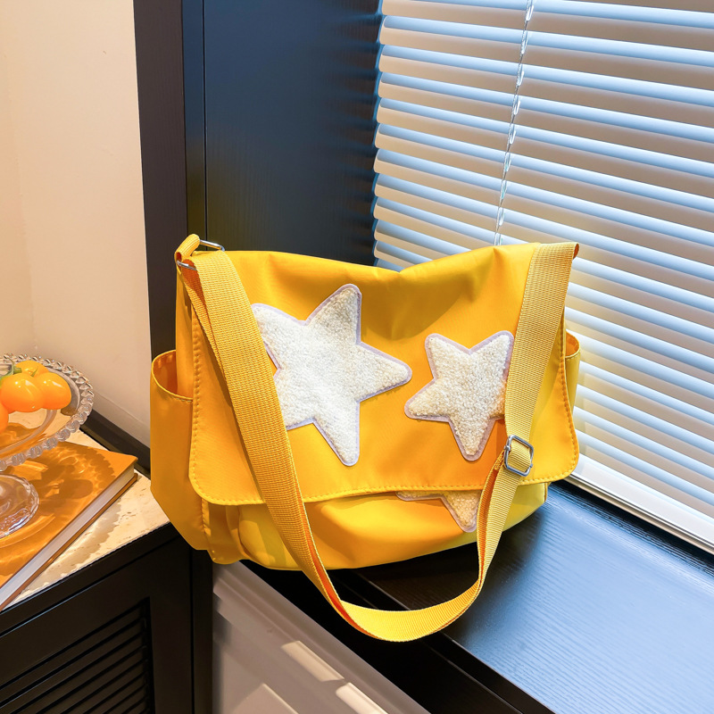 学院风星星包包女大容量五角星帆布包学生上课包单肩斜跨包托特包