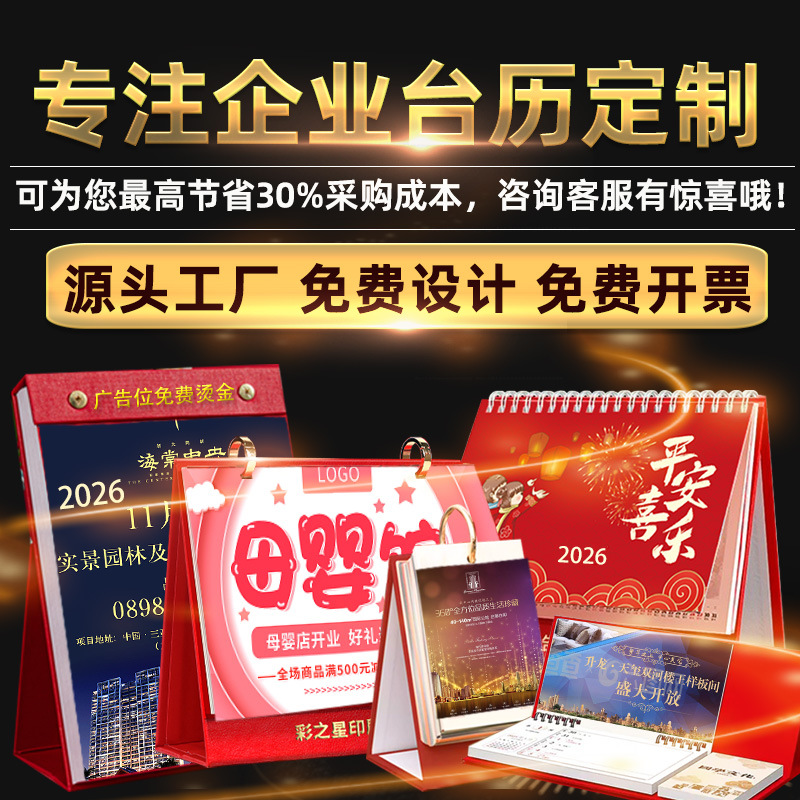 2026年马年台历创意简约桌面日历商务广告印刷保险企业台历定 制