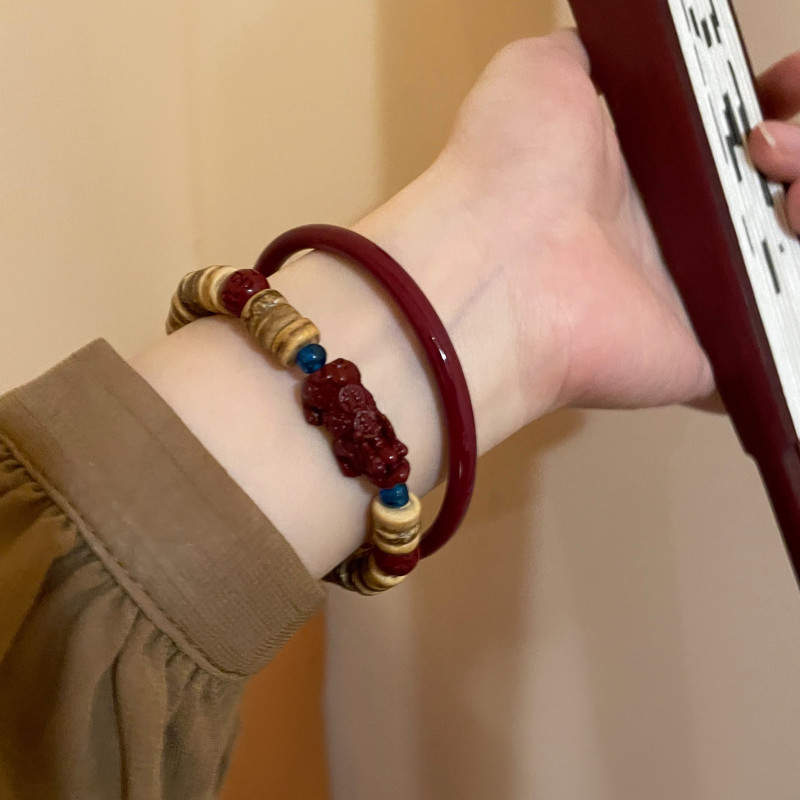 新中式椰壳朱砂貔貅串珠手镯女款ins小众设计感复古气质百搭首饰