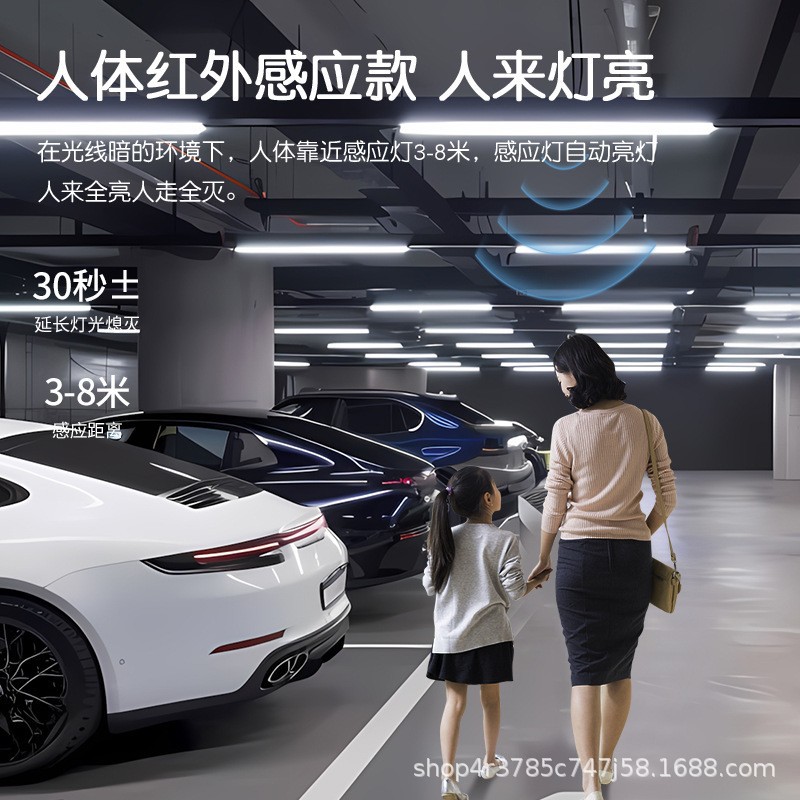 智能感应长条灯声光控人体雷达微亮车库灯物业走廊停车场商场线条
