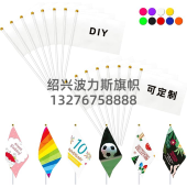 空白旗帜14*21白色手摇旗带杆白色涤纶旗帜 DIY纯色手挥旗