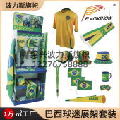 巴西国旗球迷产品展架套装圆领t恤流苏色丁足球围巾棒球帽车旗杆