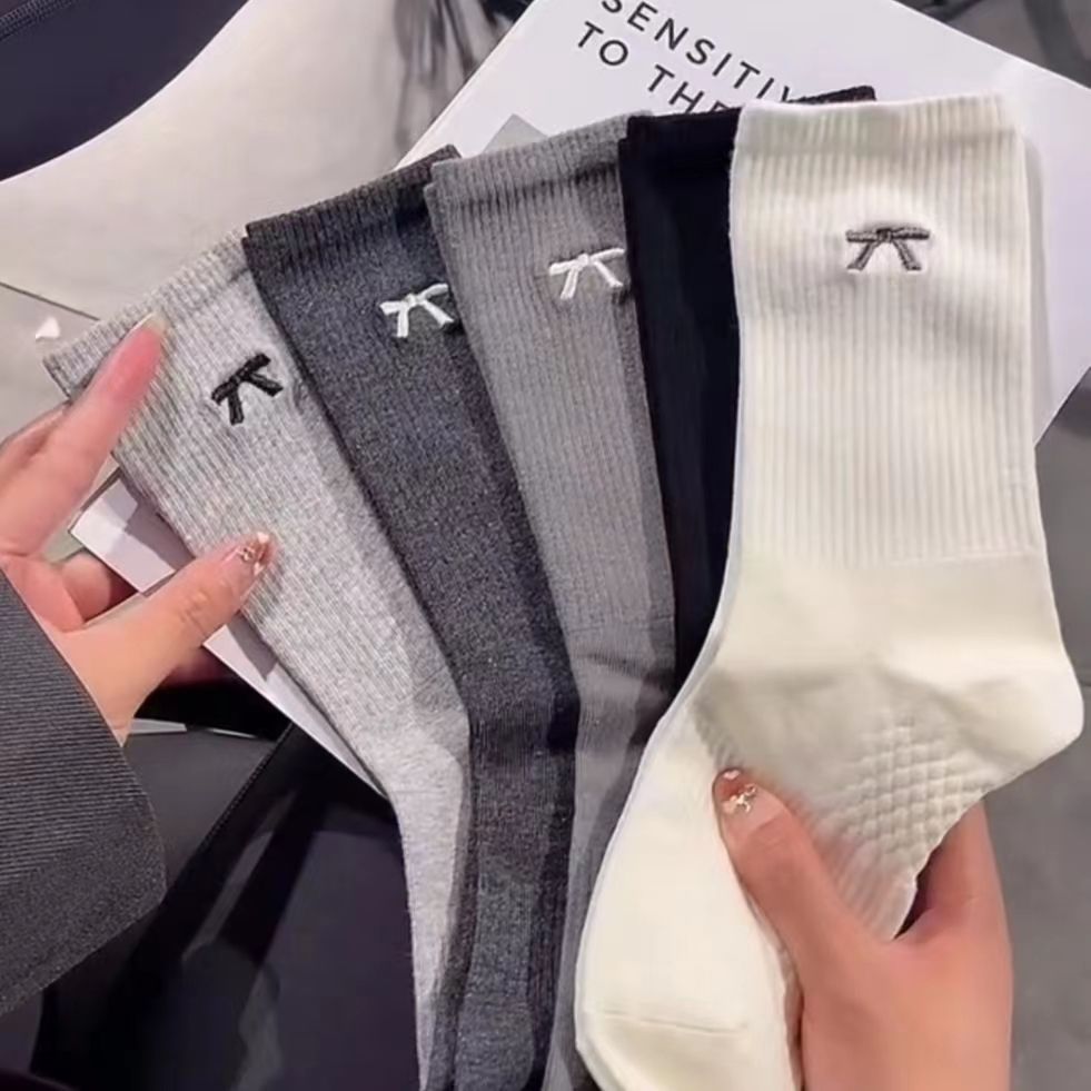 袜子女中筒袜秋冬款黑白色ins潮春夏季短袜学生运动月子堆堆长袜