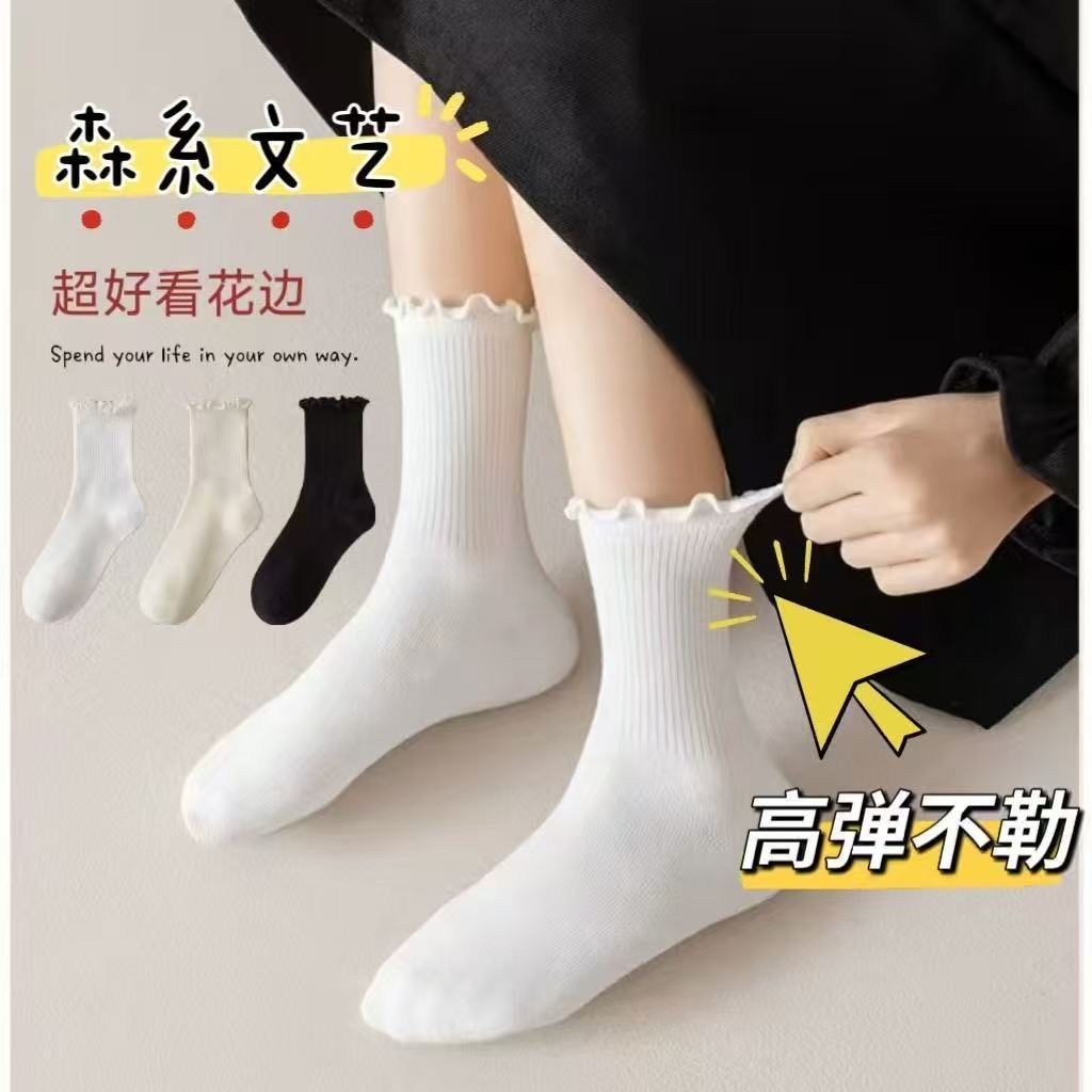 木耳边袜子女奶白色ins潮日系学院风jk花边袜夏季百搭中筒堆堆袜