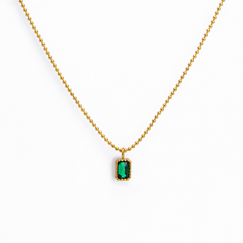 跨境小方形锆石项链女饰品钛钢轻奢吊坠锁骨链时尚方块高级感首饰