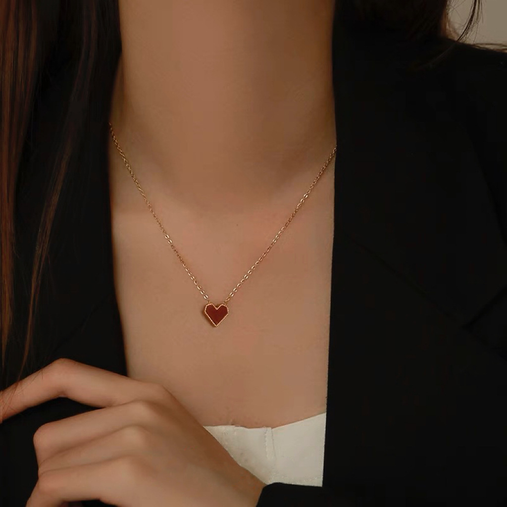 红色小爱心女项链项圈饰品钛钢桃心锁骨链百搭气质吊坠高级感首饰