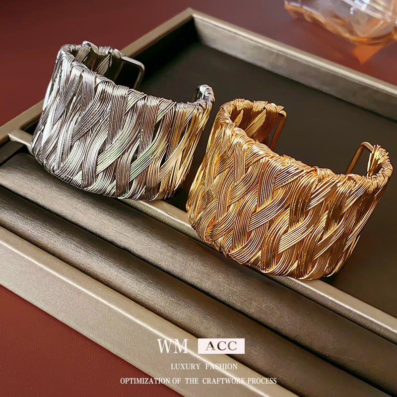 中古vintage麻花编织开口手镯复古设计感手环小众冷淡风气质手饰