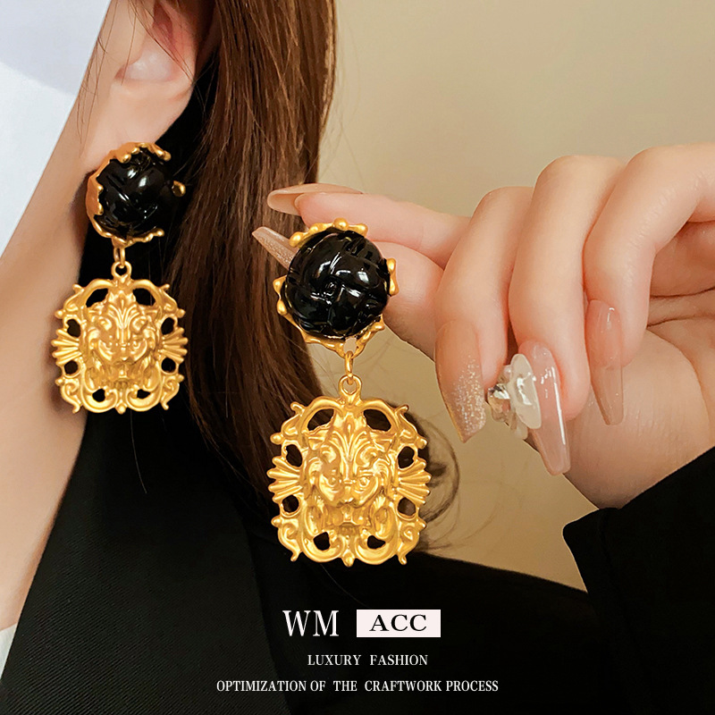 中古vintage耳环银针不规则狮子头金属耳钉个性复古耳饰厂家批发