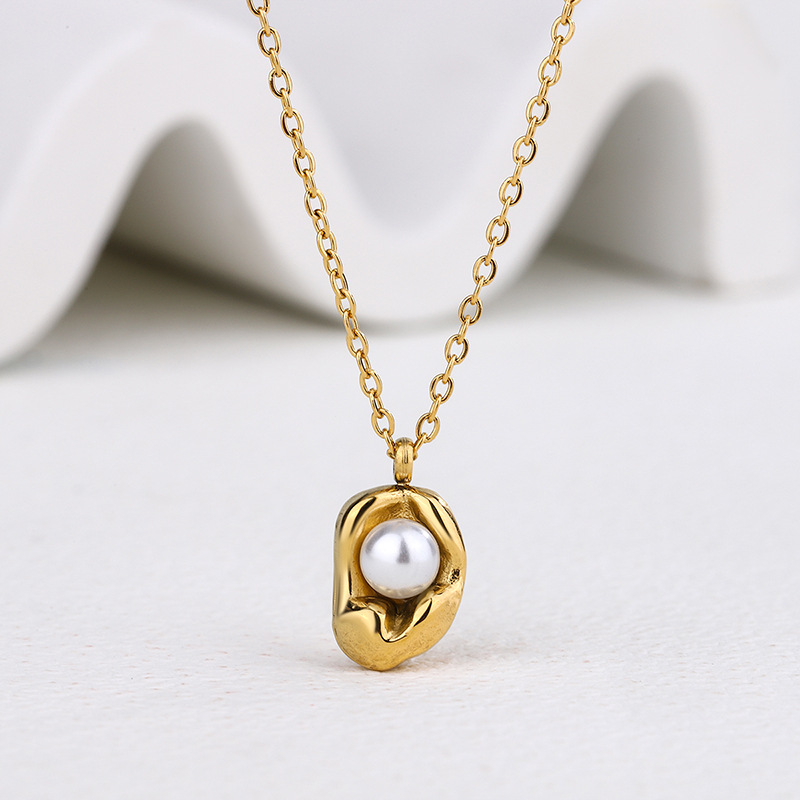 仿珍珠钛钢珍珠项链女个性吊坠简约锁骨链首饰无暇高级感女生饰品