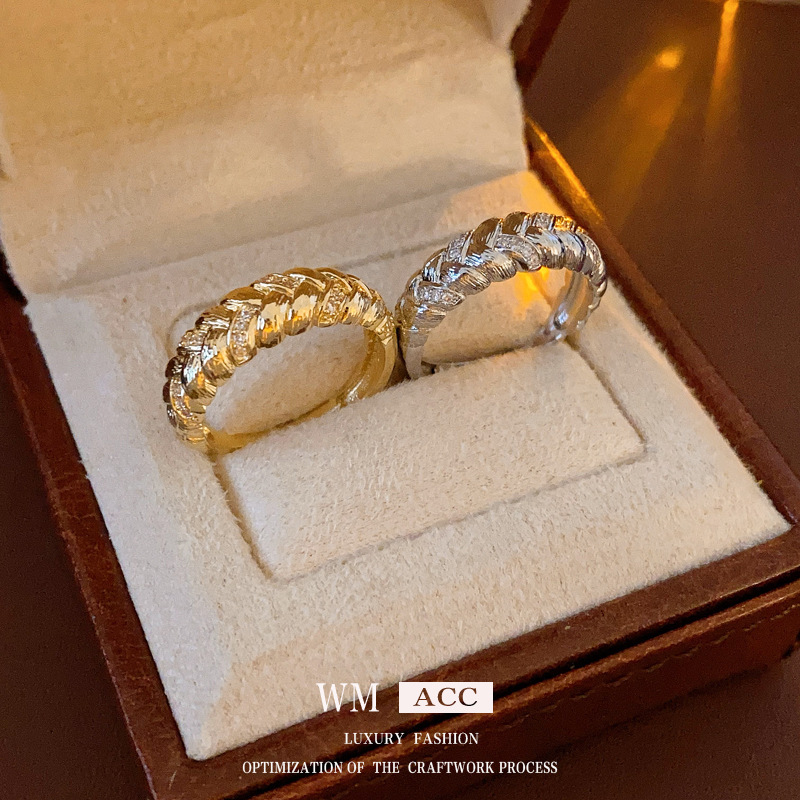 中古vintage麦穗戒指复古轻奢宫廷风锆石食指戒小众高级感手饰女