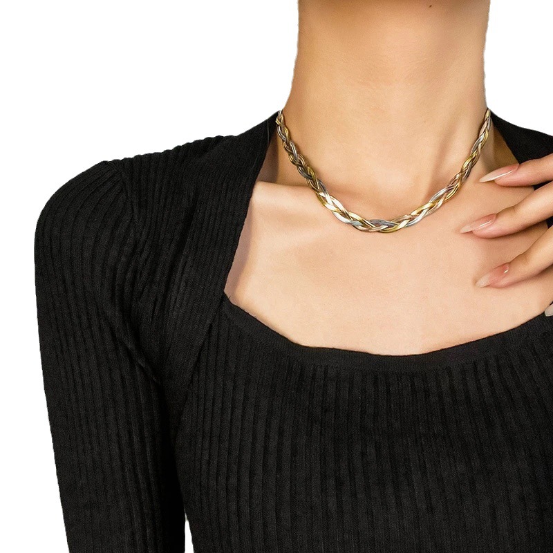 欧美跨境批发新款简约高级感复古气质金属蛇骨链镶嵌水钻手链项链