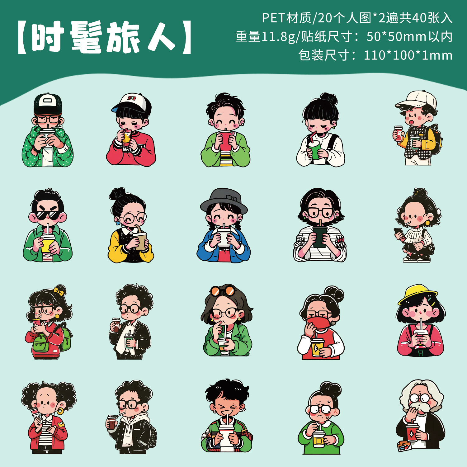 跨境专供悠长假日雾面模切创意贴纸 韩系人物造景贴纸pet贴画批发