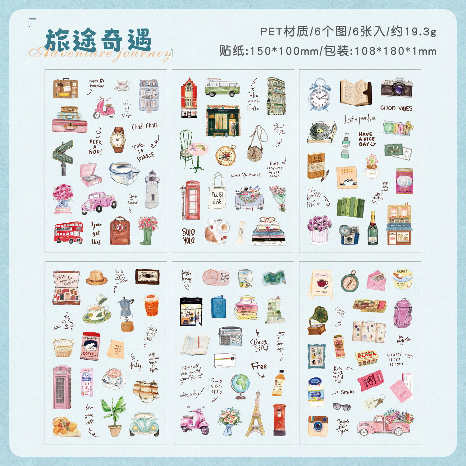 悦诗跨境醇享咖坊跨境复古手帐贴纸包 膜切防水手账素材创意贴纸