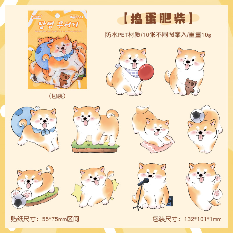 跨境专供萌宠日常儿童卡通创意贴纸 动物装饰手账素材pet贴画批发