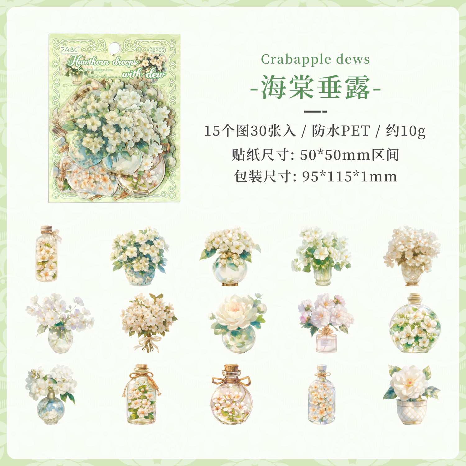跨境专供新品花间信使花卉创意贴纸 复古花瓶手账素材diy贴画批发