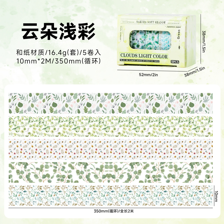跨境专供新品青墨花霏手帐胶带 花卉手账素材造景diy贴纸胶带批发