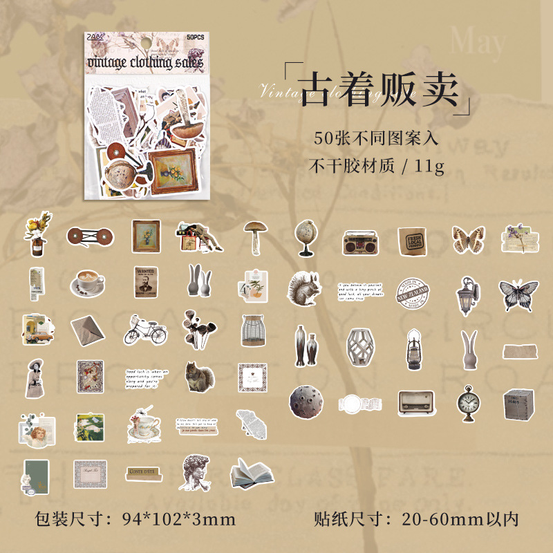 悦诗跨境专供 复古回收集手帐贴纸包 手账素材手机行李箱创意贴纸