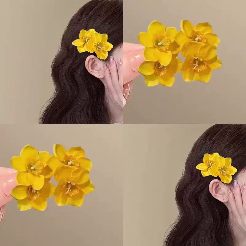 2025原创【春春欲动】明媚黄色双生花朵发夹甜美可爱侧边夹发卡