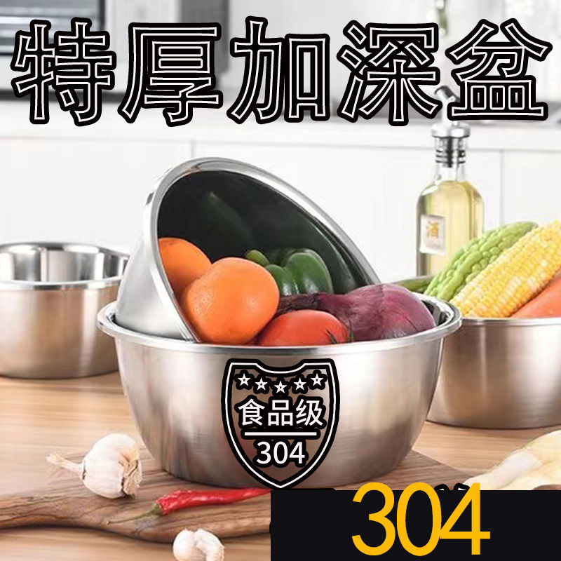 304不锈钢盆厨房盆子特厚加深大面盆洗菜盆和面装汤碗汤盆洗脚盆