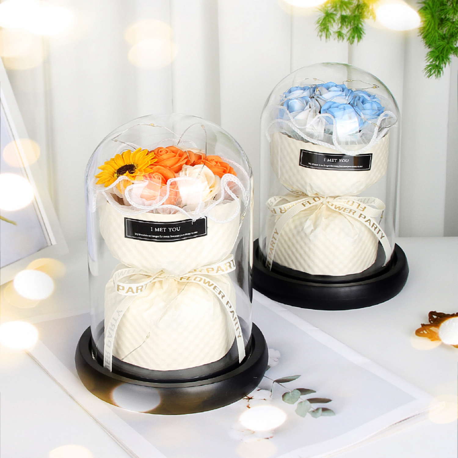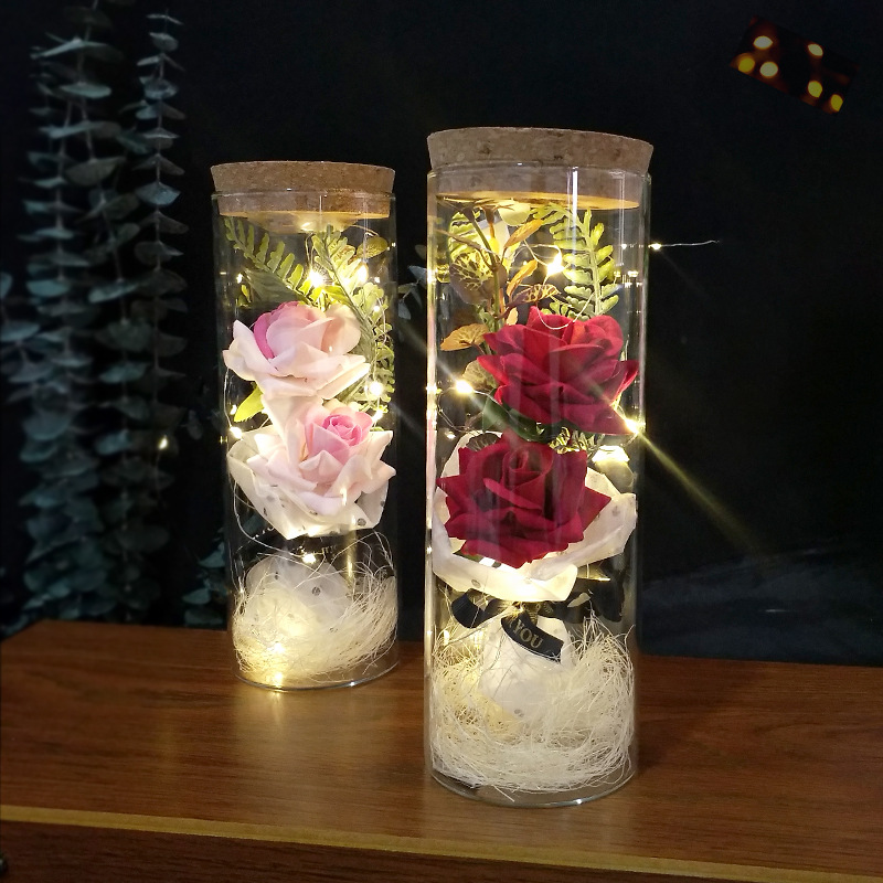 外贸专供 LED灯香皂花发光玫瑰玻璃罩礼盒情人节送女朋友圣诞礼物