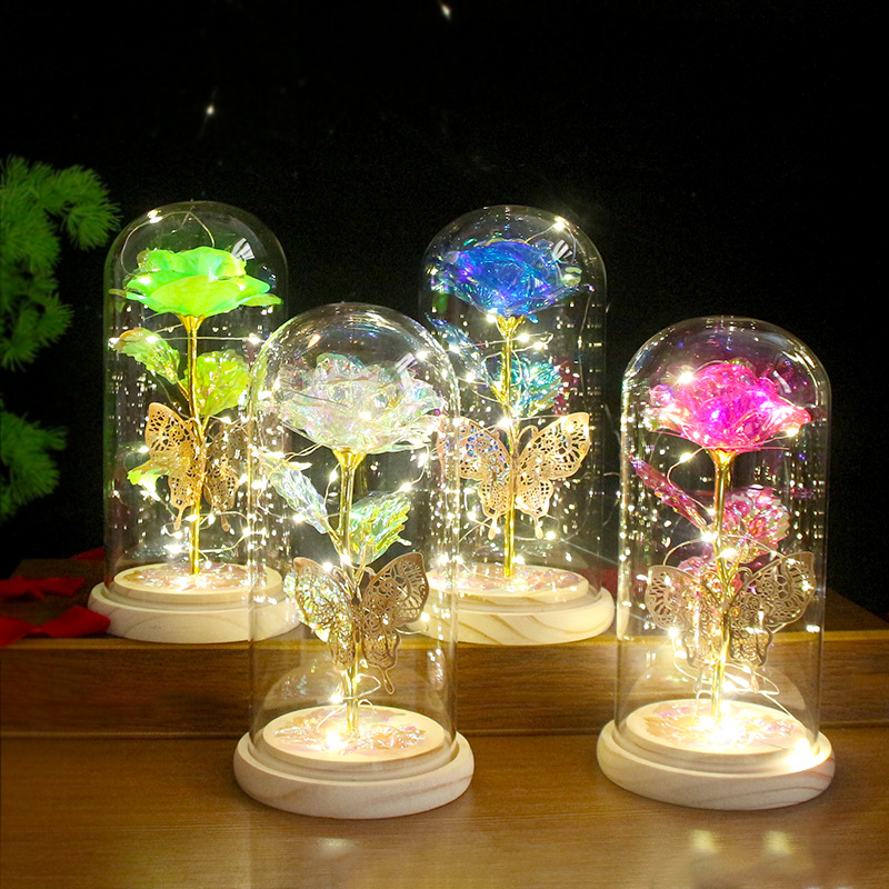 外贸专供 520七夕送女朋友新款led灯圣诞节发光玻璃罩玫瑰花灯