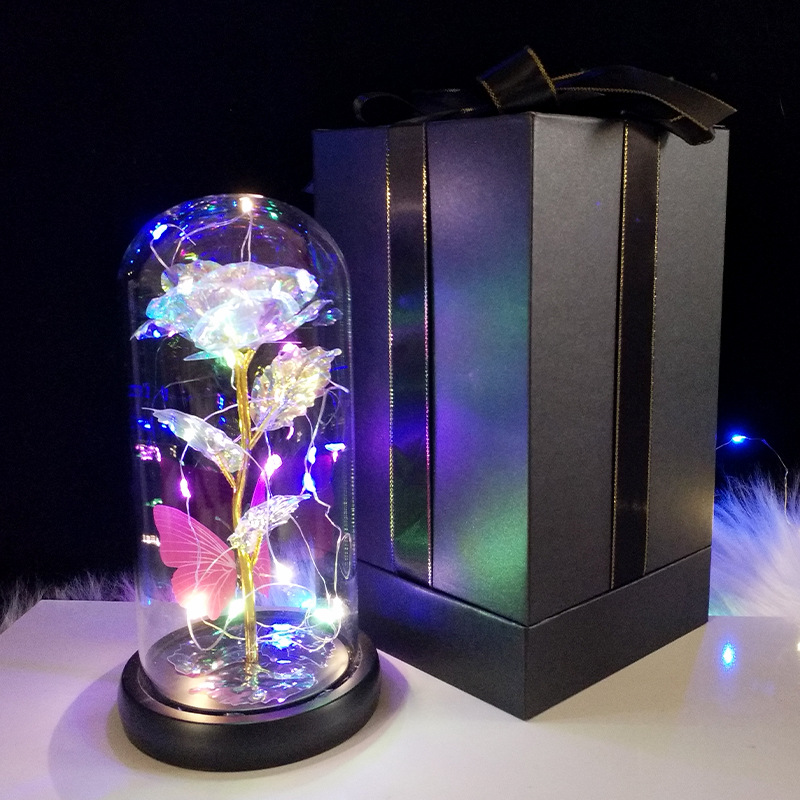 外贸专供 爆款LED灯夜光玫瑰花玻璃罩礼盒情人节礼物生日礼品