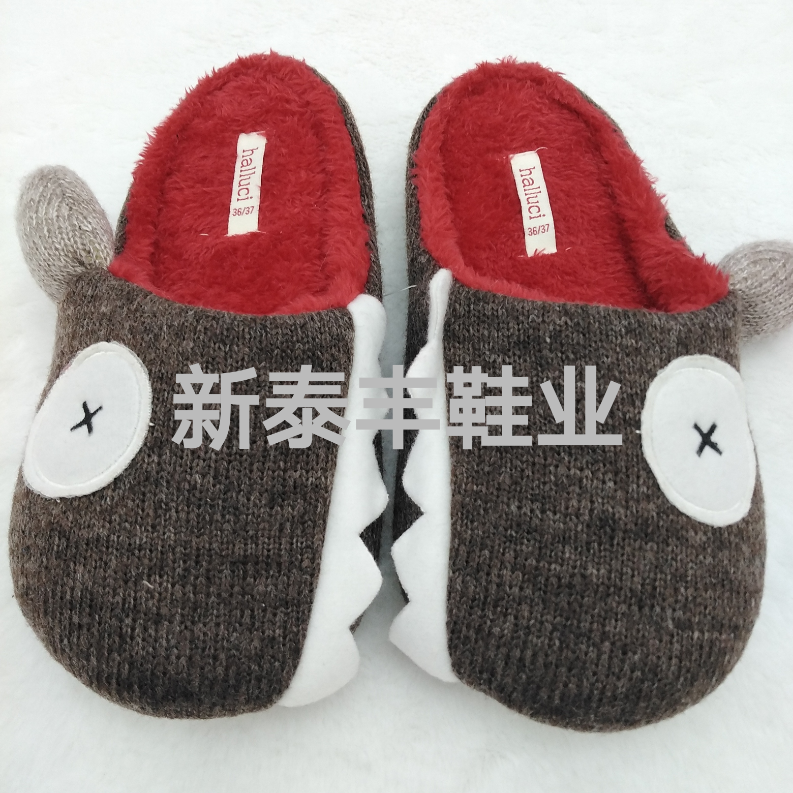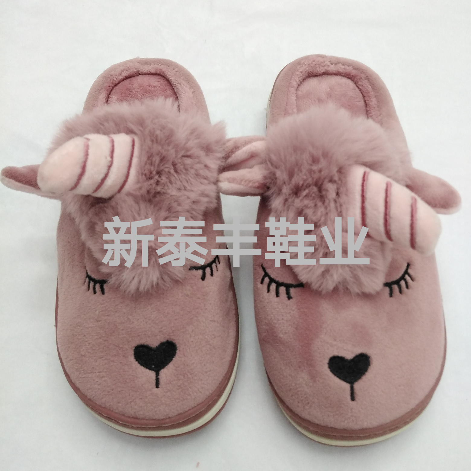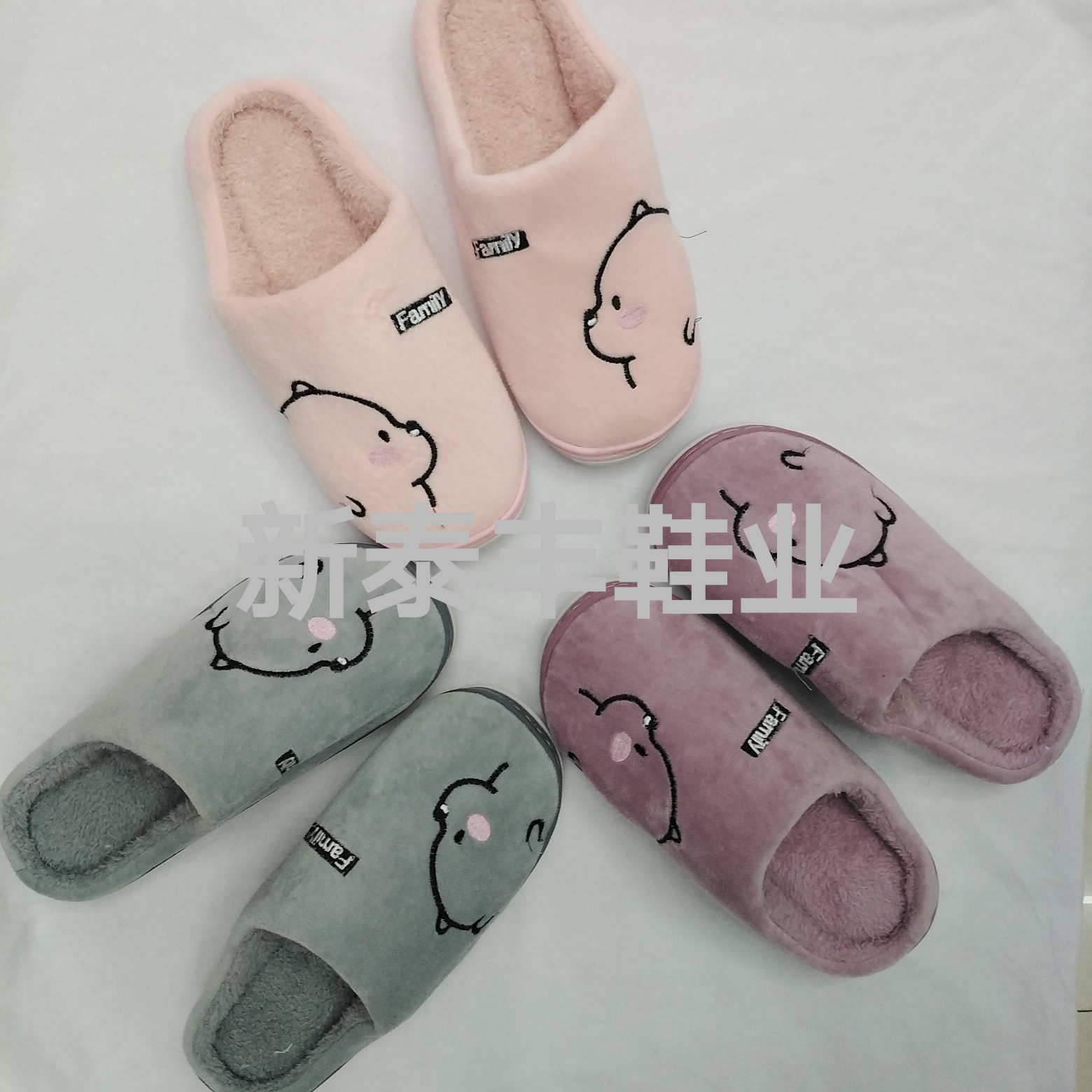 刺绣短毛拖鞋动物半包居家室内拖鞋厚底防滑松糕拖鞋