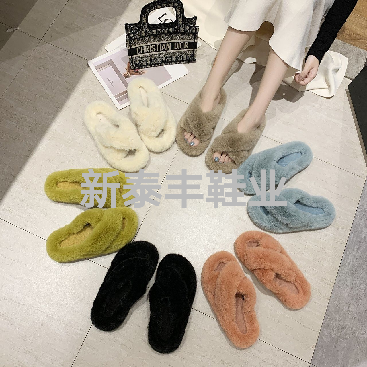 真兔毛网红情侣室内居家拖鞋厂家批发男女毛绒拖鞋