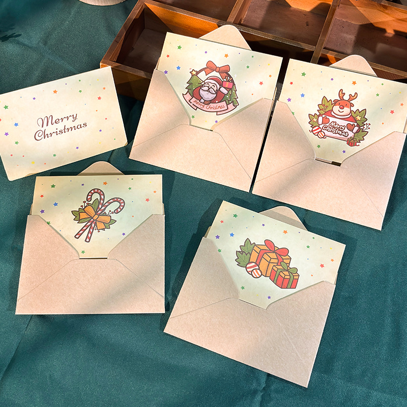 复古圣诞节贺卡折叠卡片圣诞节日祝福卡平安夜商务留言卡信封套装