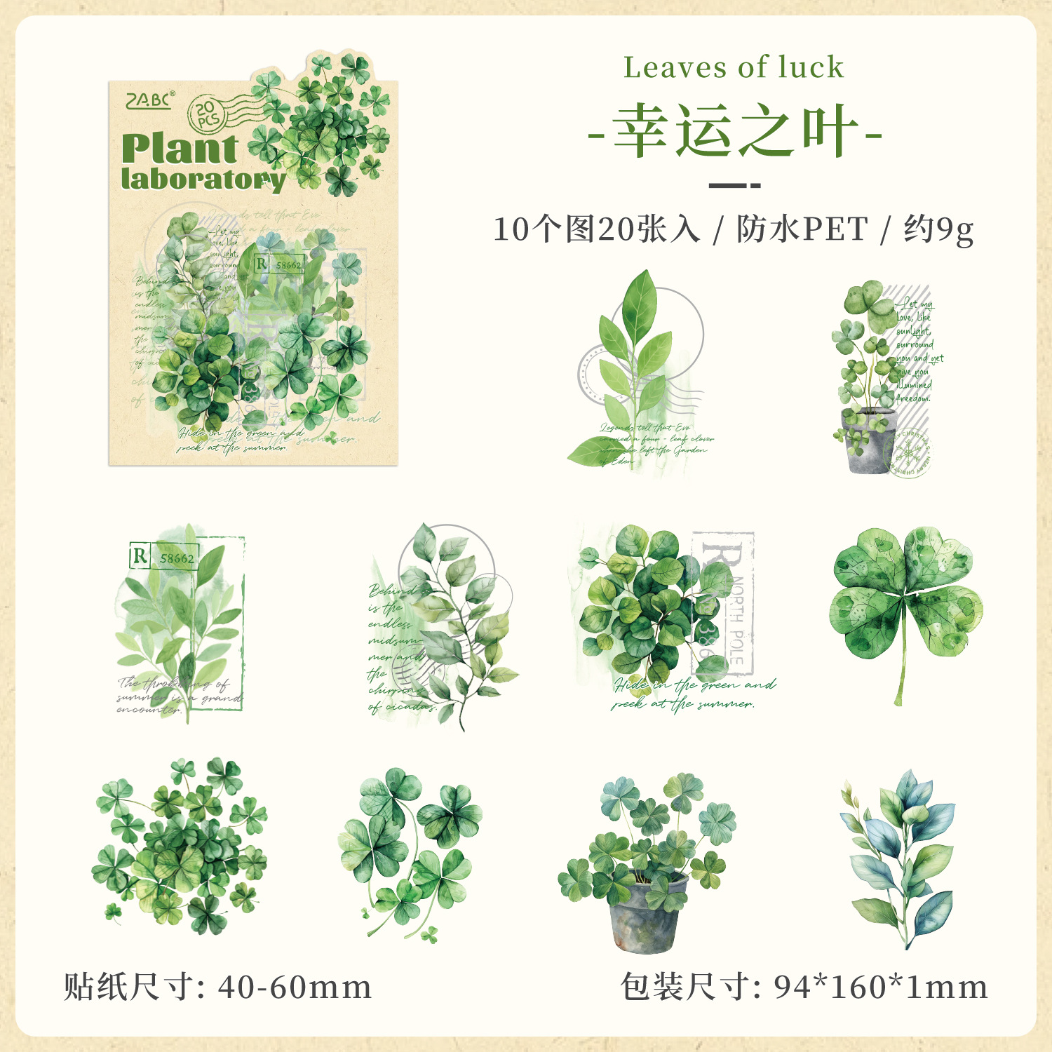 跨境专供植物实验室叶子pet防水贴纸植物手账素材diy儿童贴画批发