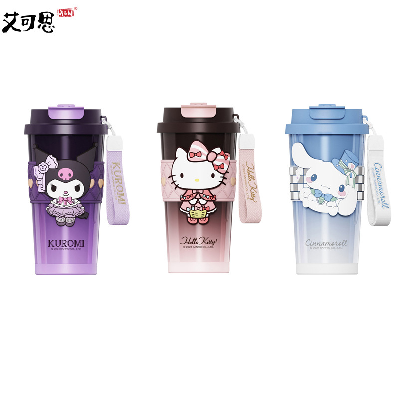 艾可思工厂三丽鸥加黎双饮520mL 桌面车载吸管直饮随手保温咖啡杯