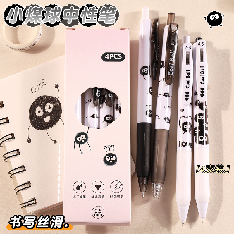 创意小煤球按动笔套装学生用顺滑0.5刷题笔ST速干签字中性笔批发
