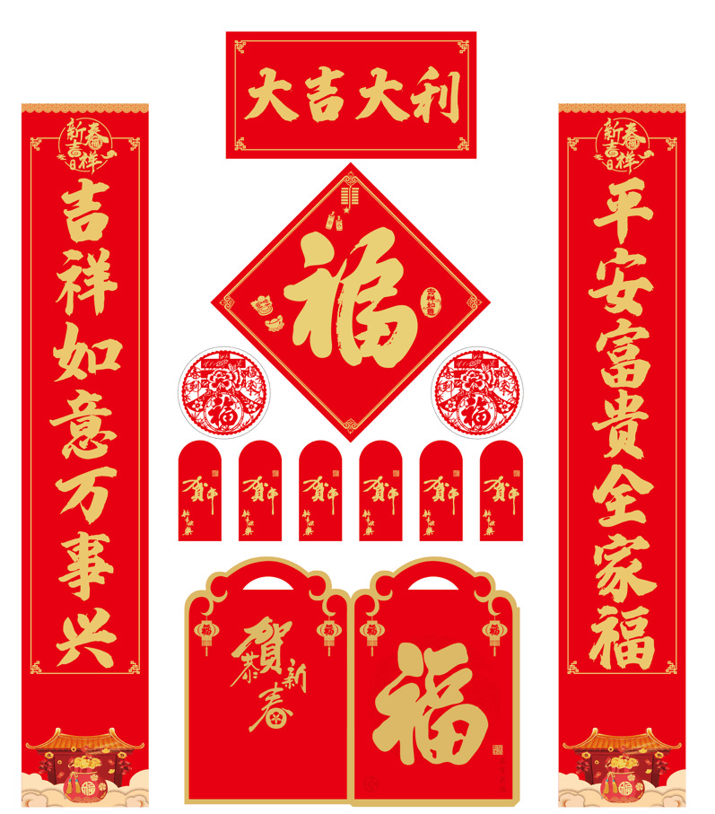 2026马年专版对联来图制作加急发货浮雕烫金对联福字红包制做礼袋