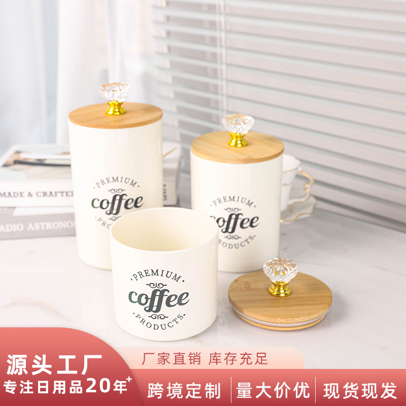多功能密封储物罐 ins风咖啡茶叶糖果收纳罐竹盖厨房调料储存罐