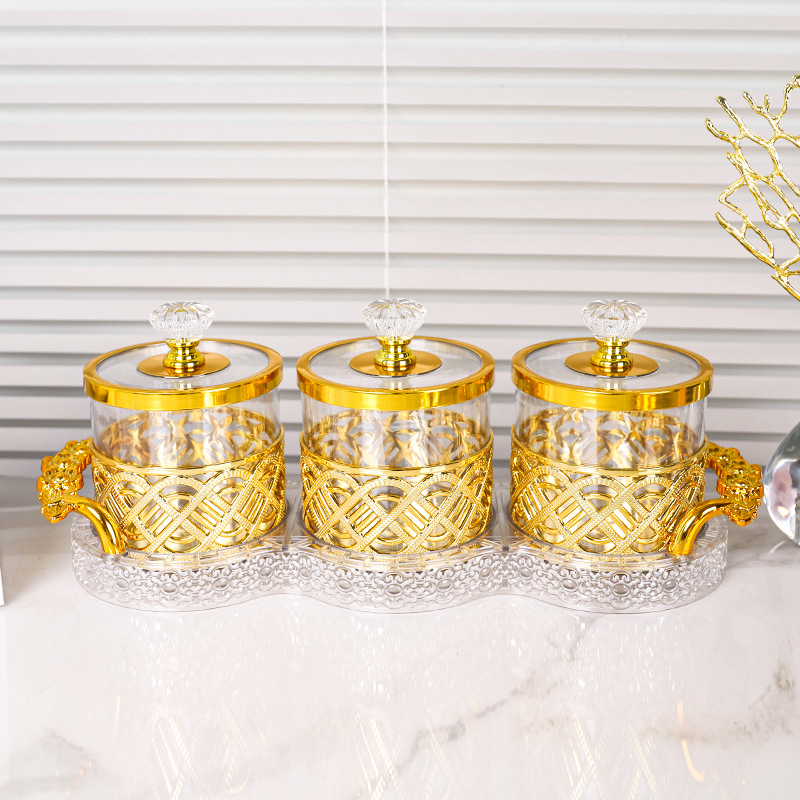 跨境爆款多用途塑料储物罐带盖欧式轻奢收纳罐茶叶零食镀金糖果罐