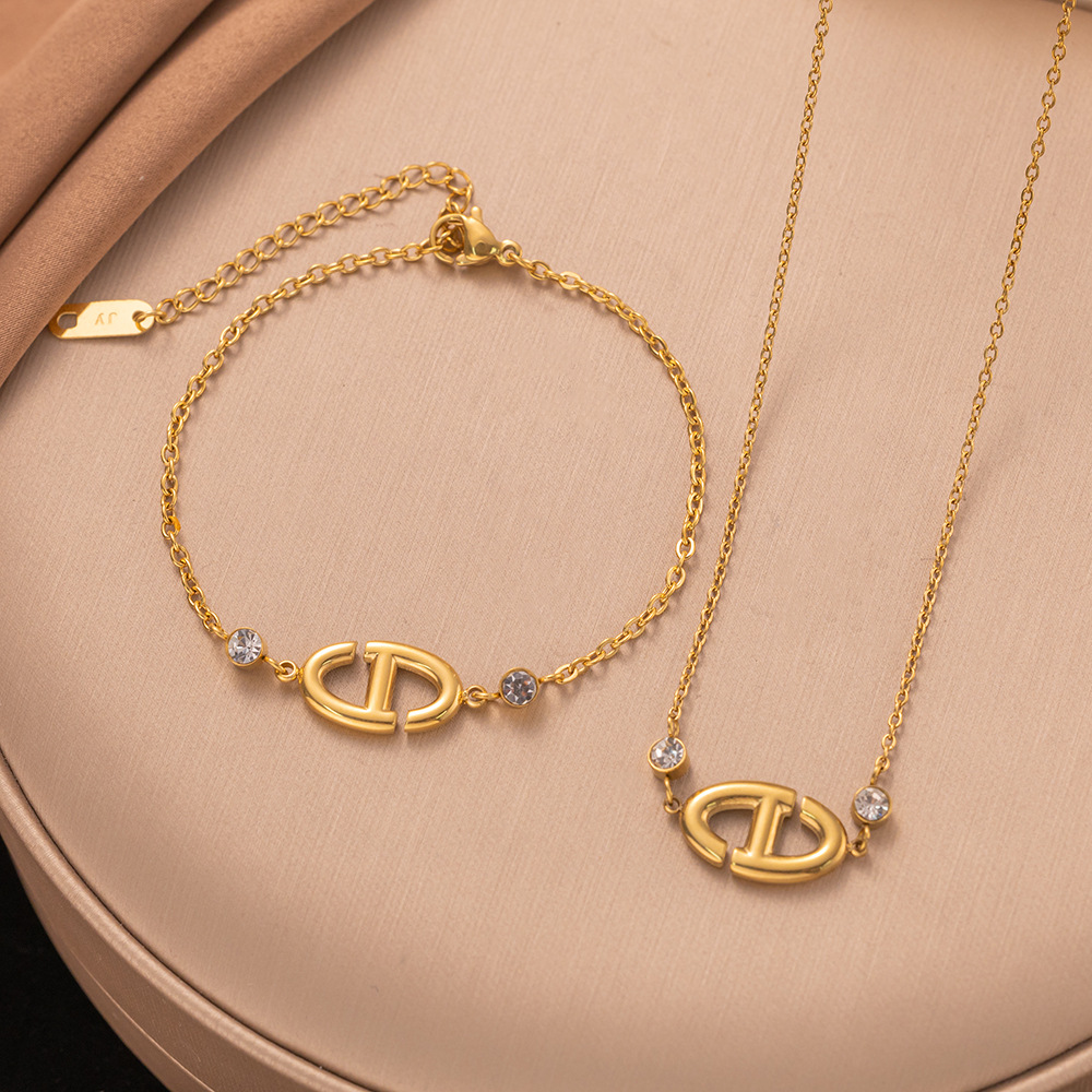 欧美跨境钛钢小众设计感项链女潮网红简约百搭字母D吊坠ins毛衣链