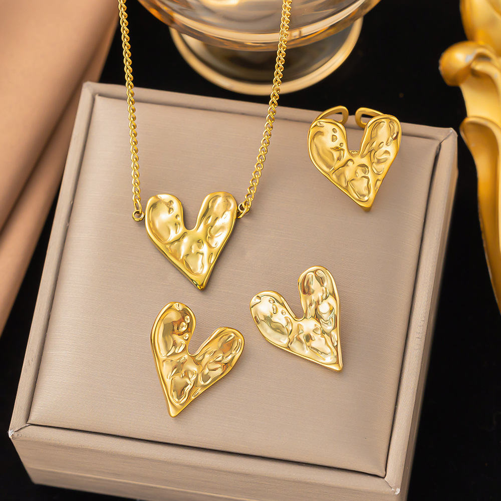 跨境批发时尚百搭2024年新款熔岩不规则心形女款首饰套装锁骨链女