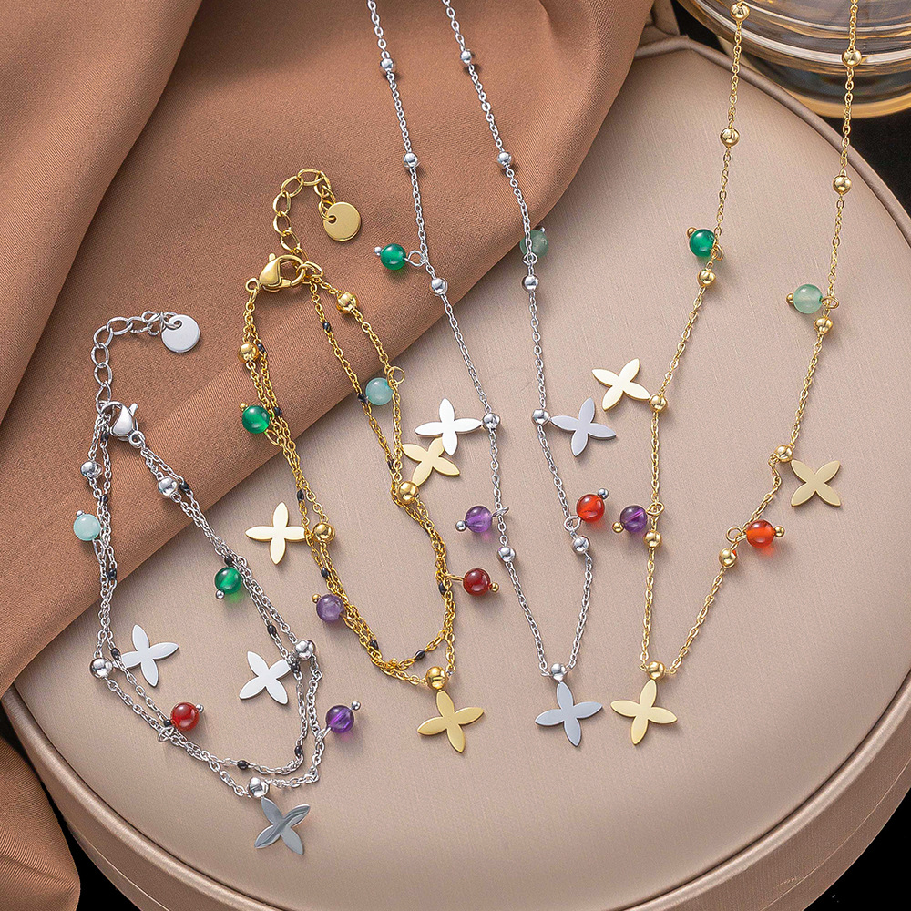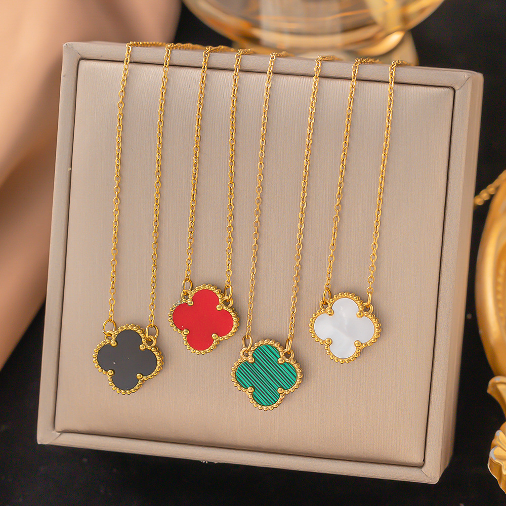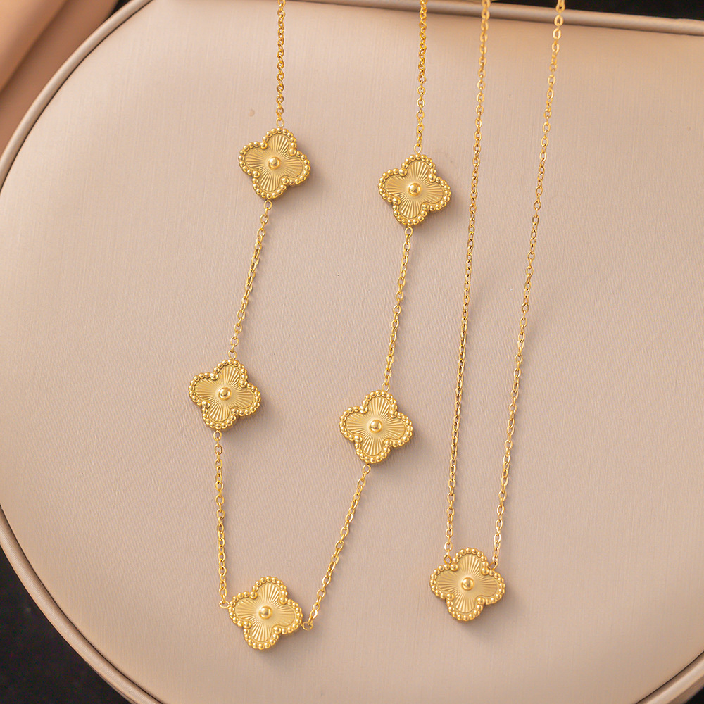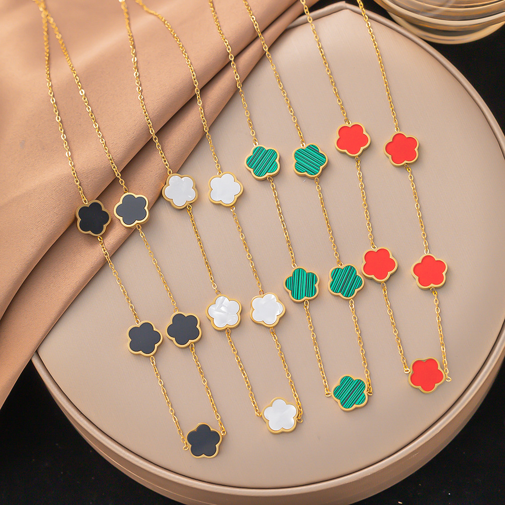 跨境五叶草花朵钛钢项链女小众梅花吊坠百搭手环欧美时尚气质项链