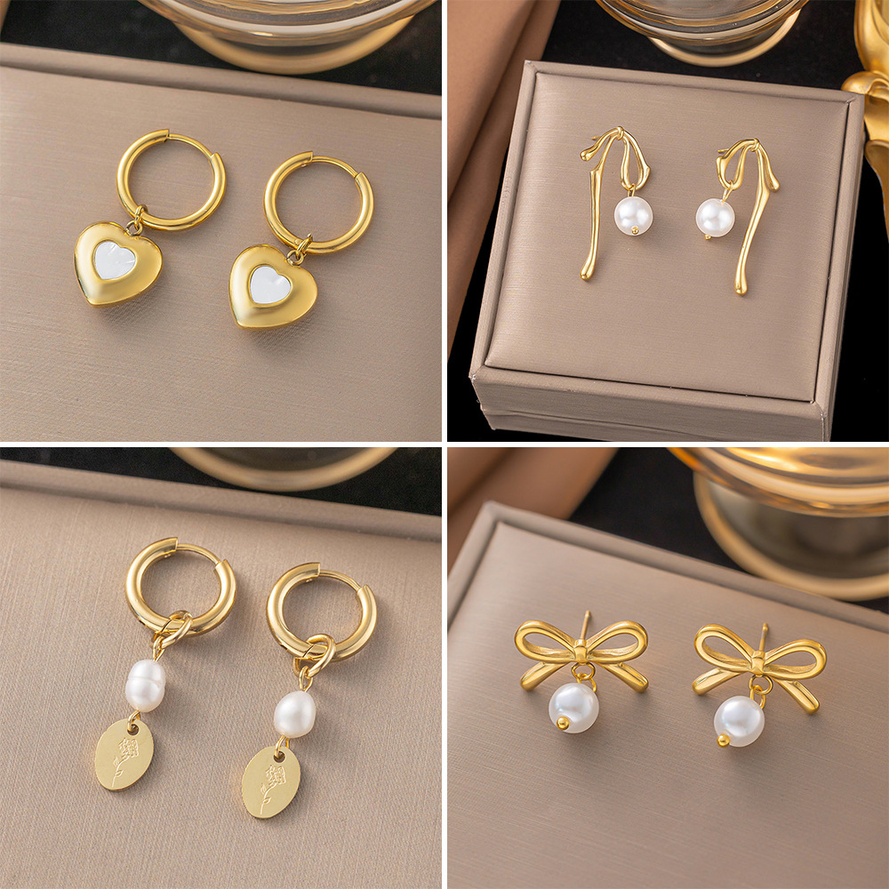 日韩风清新甜美光面钛钢百搭个性爱心贝壳轻奢高级感项链耳环一套