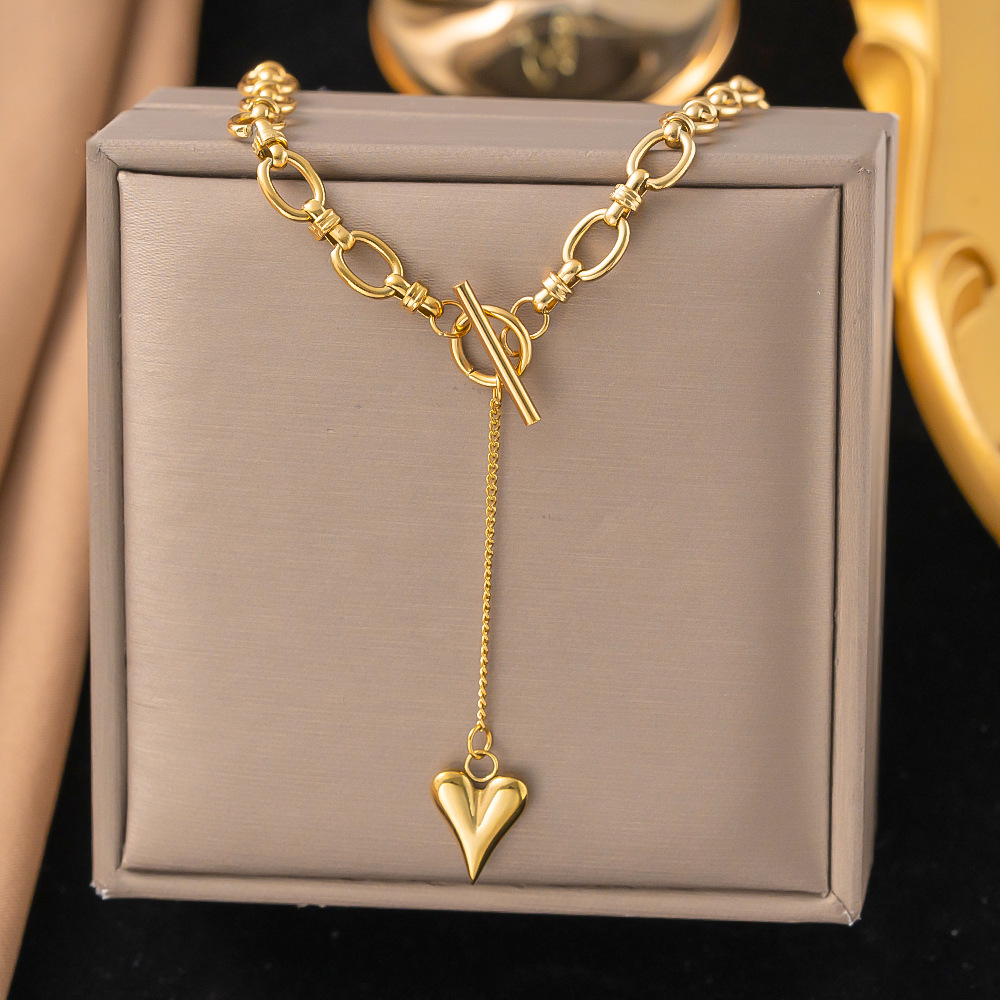 跨境配饰新款爱心项链女轻奢简约短款锁骨链女钛钢精致饰品女批发
