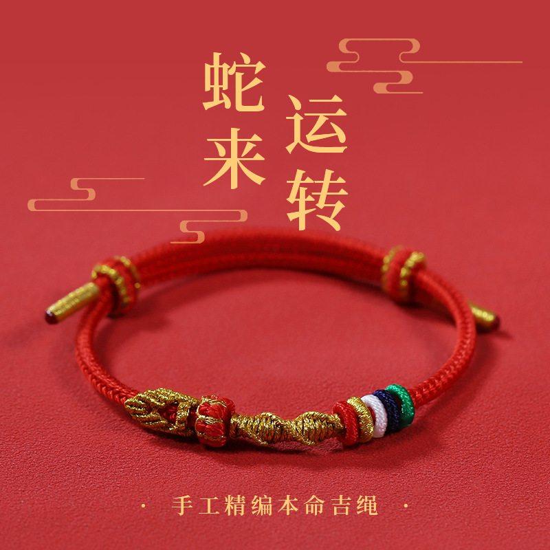 2025年本命年红绳手链生肖手绳蛇年手工编织可穿黄金吊坠男女礼物